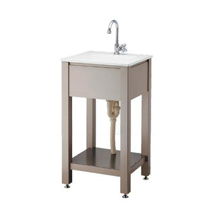 ●立形スワン水栓付き●バケツや小物置きに便利な棚板付き●オーバーフロー付き排水金具、排水トラップ、ゴム栓(くさりなし)付き●組立式