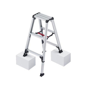 ●調節も操作レバーで調整簡単。●幅広天板は職人さんからの声により、工具などが置ける天板トレー形状にリニューアル。作業効率の向上に繋がります。●踏ざんリブを強化。これにより滑り止め効果が向上し、安全な昇降を実現します。●ゴミが溜まりにくい特長はそのままに、素材を少し柔らかい物に変更。これにより閉じた際に発生していた音を軽減し、より使い心地の良い仕様に近づけました。