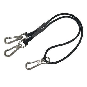 ●ゴムとヒモを編み込んだ特殊縫製で、伸縮性に優れており、ヘタりにくくなっています。スリムタイプで装着時に邪魔にならず、作業をスムーズに行うことができます。中央のフックをサポートベルト等のDカンに取り付け、コードの両端に工具を取り付けて使用します。今まで2本使っていたコードを1本にまとめることが可能になりました。