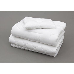 ●ほこりが出にくい、清潔で安心なポリエステルわたの3点組布団(枕・掛け布団・敷き布団)です。●敷き布団は厚さ約9cmとボリュームがあり、快適にお使いいただけます。●掛け布団は、身体のラインに沿ったキルティングを施しており、暖かさを逃がしにくいです。