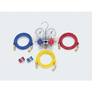 ●R134a(カーエアコン)対応型ゲージマニホールドです。●ニードル式パッキン採用で確実なバルブの開閉がおこなえます。●80Φと大きなゲージを付けているので、圧力、温度値が読み取りやすくなっています。