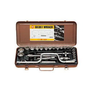 ●24点セット:ソケット内容(18個)、ハンドル内容(6本)●エキステンションバー 125・250mm、ユニバーサルジョイント、ラチェットハンドル、スライディングTハンドル、スピーダーハンドル