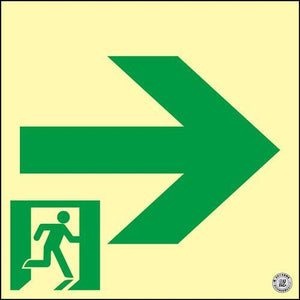 ●C200級●通路・経路表示用●日本消防設備安全センタ-認定品●取付仕様:両面テープ●縦(mm):120●横(mm):120●厚さ(mm):1.5●表示内容:非常口・右矢印●取付方法:貼付タイプ(裏テープ付)