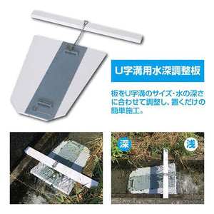 ●U字溝に使用する水深調整板です。●溝のサイズ・水の深さに合わせて調整し、置くだけの簡単施工。●主材に発泡PVCを使用しているので軽く、移動が楽に行えます。